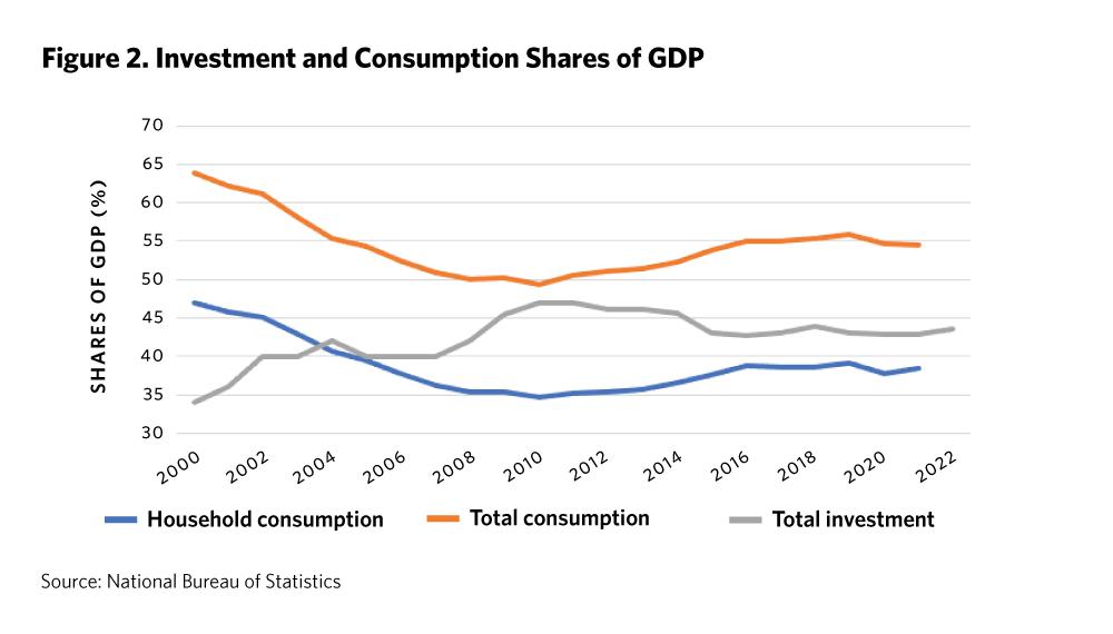 Consumption in China has recently been growing by 4–5 percent a year, excluding the COVID-19 years, which were terrible for consumption but are unlikely to be repeated. For consumption to surge even as investment and GDP growth drop sharply, an external factor would need to directly or indirectly drive up growth in household income. This might happen if China were, for example, to transfer roughly 1–2 percentage points of GDP every year from local governments and wealthy individuals to ordinary households.