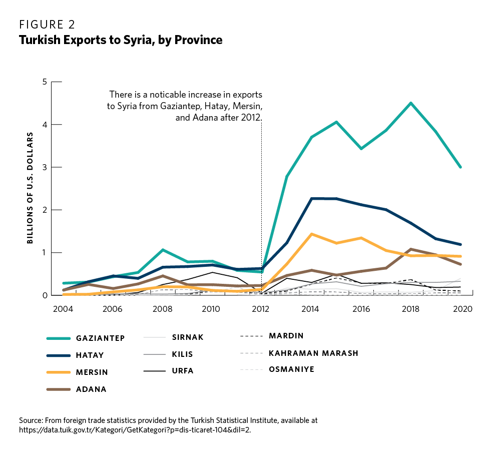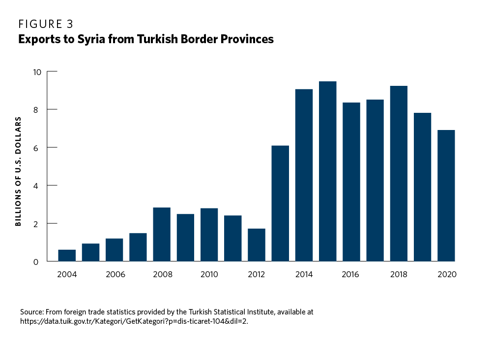 19 Özlem Tür, “The Political Economy of Turkish-Syrian Relations in the 2000s—The Rise and Fall of Trade, Investment and Integration,” in Turkey-Syria Relations: Between Enmity and Amity, 160.